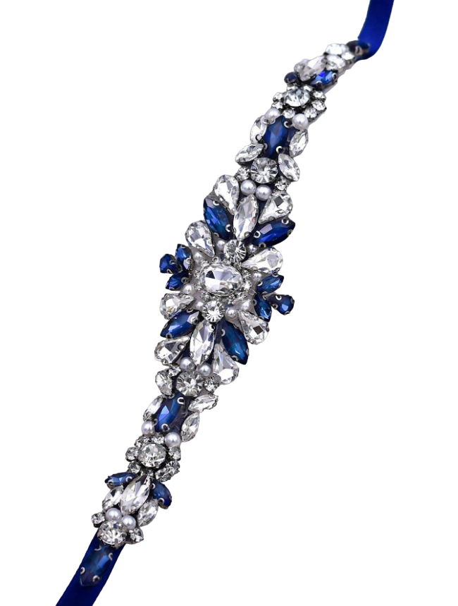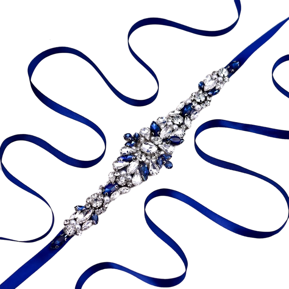 Com o cinto bordado azul marinho para vestido de festa, você adiciona um elemento de cor poderosa e brilho refinado, garantindo que sua presença seja notada pela elegância e pelo bom gosto.