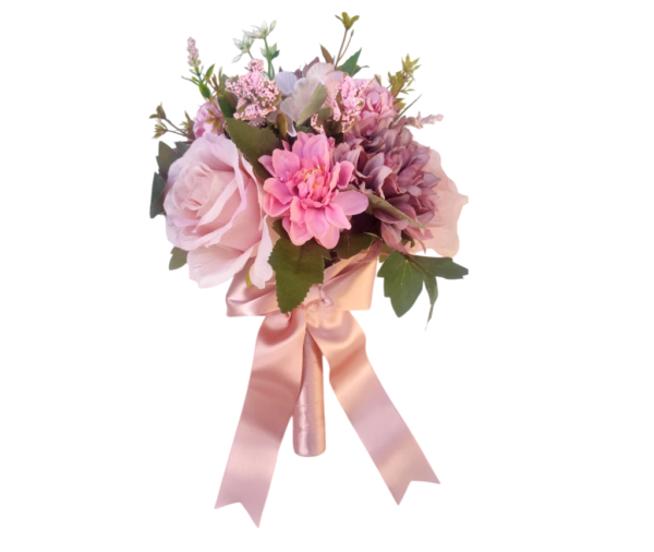 • Acabamento Impecável: O buquê possui cabo revestido em cetim lilás com um laço de pontas longas, trazendo fluidez e sofisticação ao caminhar.